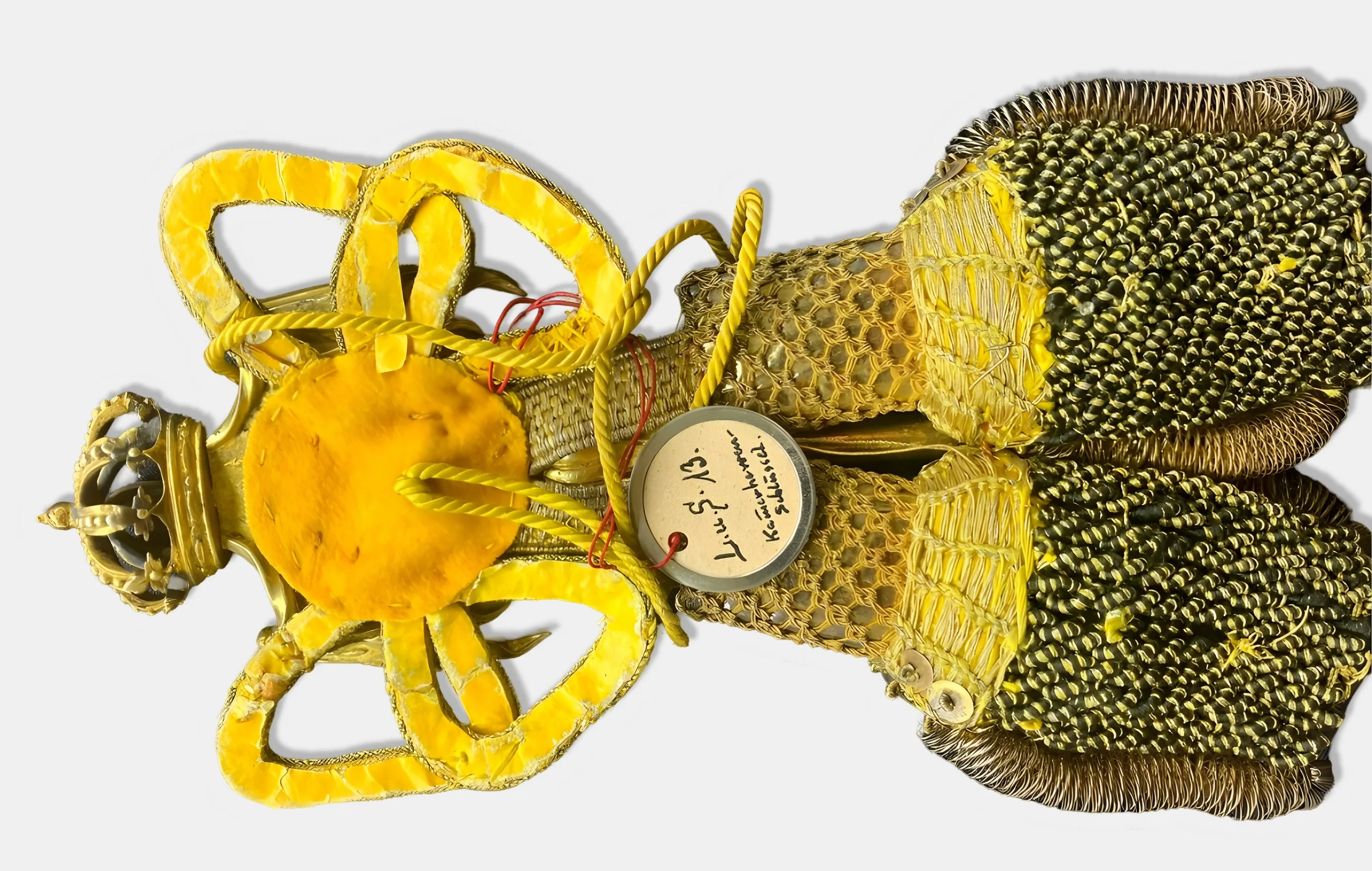 Auch dieser Schlüssel auf einem Portepee aus Goldbouillons und Goldlahnstickerei getragen, dass in dieser Form bereits unter König Karl Verwendung fand.