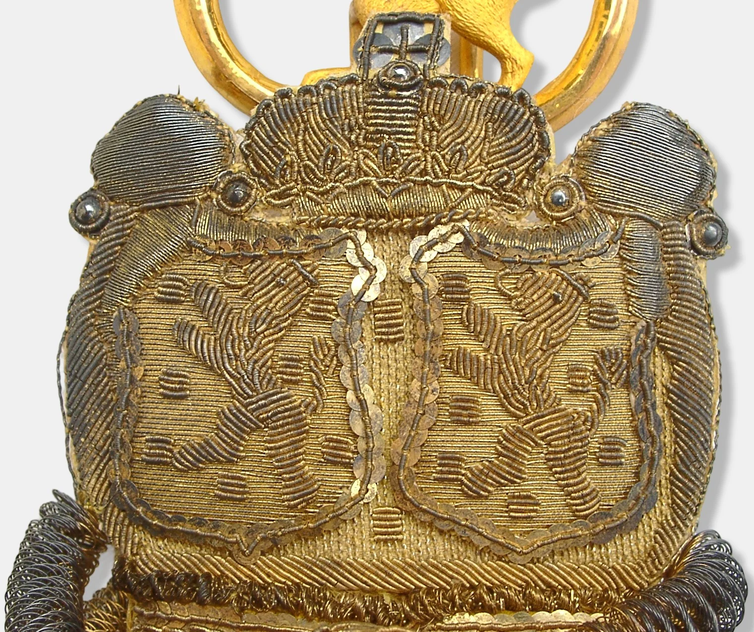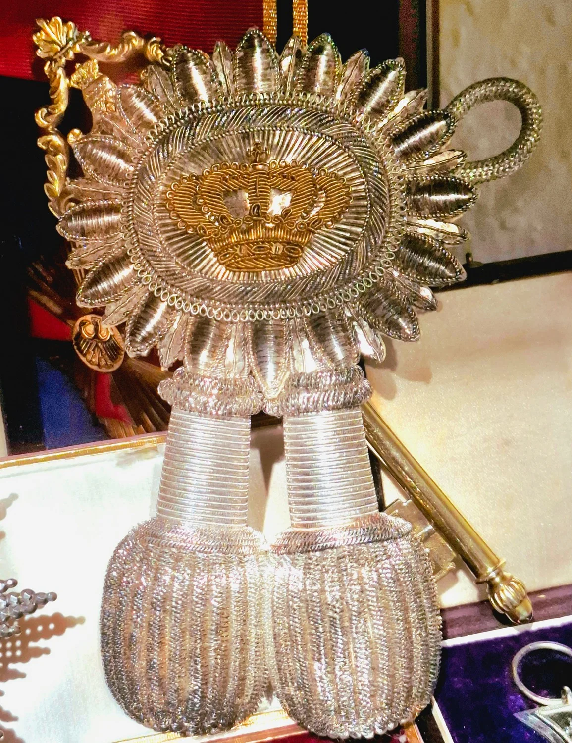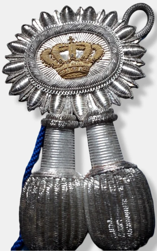 Auch dieser Schlüssel auf einem Portepee aus Goldbouillons und Goldlahnstickerei getragen, dass in dieser Form bereits unter König Karl Verwendung fand.